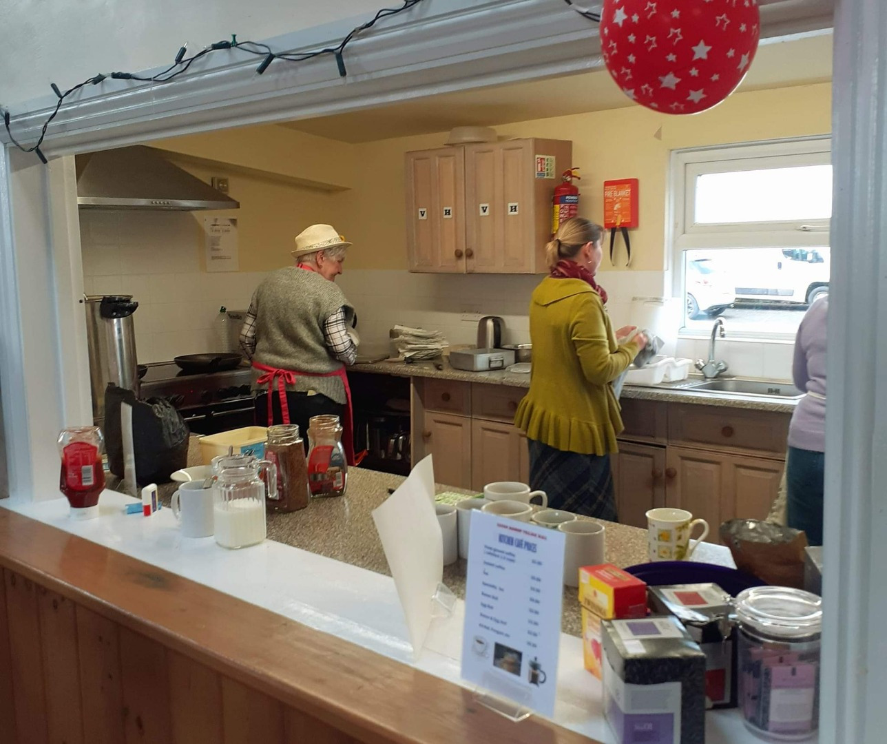 A smaller ante-room, adjacent to the main hall with wide doors and serving hatch, also includes the Community Library.